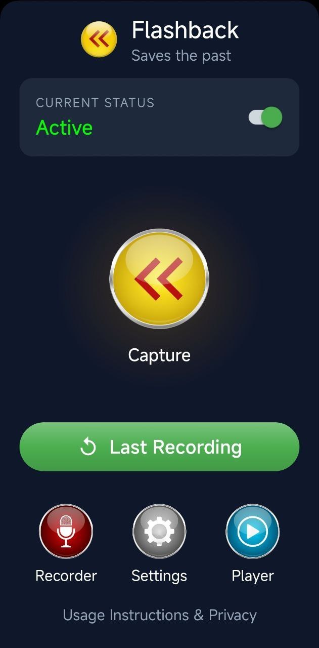 Flashback – An Audio Dashcam for Android. Built with Kotlin, it allows users to capture what they just heard, ensuring important moments are never missed. Designed for efficiency and background reliability.