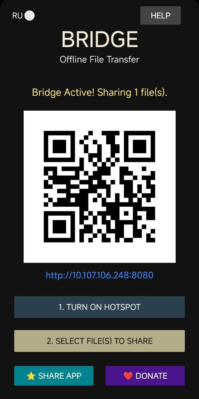 Bridge – Super fast offline file transfer app. Shares files without internet with any device (Android, Apple) via browser. No receiver app needed.